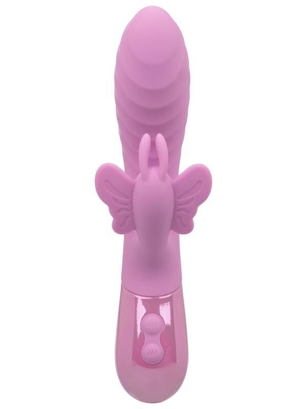 Let your desires take off with a sensational journey thanks to the Aura Dual Flutter. This powerful dual massager merges style and substance, serving up breathtaking pleasure with every use. The rippled shaft dives deep, providing rich internal stimulation, while the soft, fluttering butterfly teases and pleases the external hotspots that deserve a bit of love. These features combined with its body-safe silicone construction and fully waterproof design invite indulgence and adventure in the tub, shower, or anywhere the mood strikes.