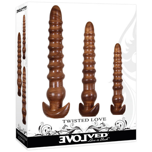 Screwing up has never felt so good! Give your back-door pleasure a twist with this 3-piece erotic `hardware' set that swirls and sparkles. It's made from firm yet pliable TPE rubber that's alive with golden streaks and veins and features three traditional shaft shapes in small, medium and large sizes. Studded with rings for delicious incremental sensation, each flexible size offers a different girth for your mood. Tapered tip for comfortable entry. Wide safety base for blissfully easy navigation.