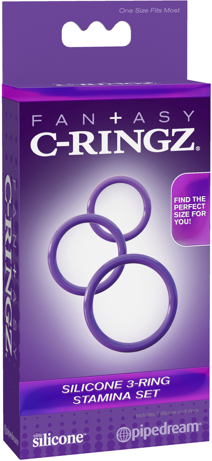 When you’re looking for the ultimate beginner’s cock ring kit, the Silicone 3-Ring Stamina Set is the proven choice for rock-hard erections that last and last! With three super-stretchy silicone rings to choose from, this trio is the perfect assortment to help you achieve your maximum potential! Made from our phthalate-free, body-safe Elite Silicone, the three performance rings range from 1.25? (3.2cm) to 2? (5.1cm). Find the perfect size for you, and put it around the base of your shaft to gently restrict blood flow and help you achieve the biggest and most intense erections ever imagined! The ring’s tight squeeze will put a clamp on performance letdowns and make a stud out of any man! Try the rings in different combinations to find the most explosive results! Use all three rings at the same time for the ultimate stamina test. Cleanup is a snap after the fun with toy cleaner and warm water. Use plenty of Moist for an extra wet and wild encounter! Small Cock Ring Diameter: 1.25" (3.1 cm) Medium Cock Ring Diameter: 1.6" (4 cm) Large Cock Ring Diameter: 2" (5 cm)