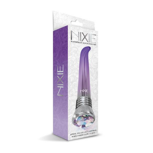 Illuminate your nights and make her glow with delight with the Nixie Jewel Ombre G Spot Vibe Glow from Global Novelties. This stunning piece isn't just eye candy for your bedside; it's the crown jewel in your arsenal of pleasure. With its smooth metallic ombre glow and whisper-quiet motor, this vibe is designed to zero in on her sweet spot with precision. Its jewel inlaid push button isn’t just for show—it unlocks waves of pleasure that’ll have her seeing stars. Packaged with eco-consciousness in mind, it’s not just her that’ll be satisfied—Mother Nature will too.