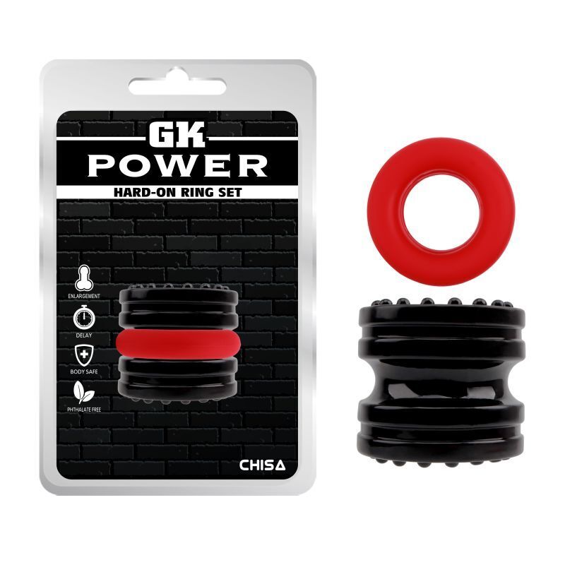 The Hard On Ring Set is built for performance and pleasure, combining style with function. Made from body-safe, stretchable TPE, this set includes two versatile rings: one textured black ring (4.5 cm diameter) and one smooth red ring (4.3 × 4.5 cm) designed to intensify erections, improve stamina, and heighten partner satisfaction.