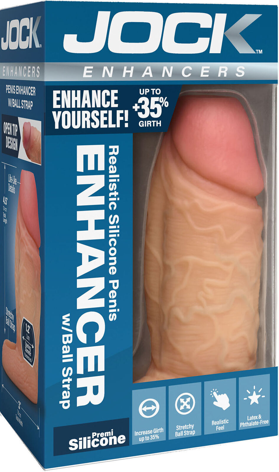 Strap in and prepare for the ultimate power boost with the JOCK Enhancers 1" Silicone Penis Extension Sleeve — taking your game from amateur hour to pro in no time flat. This extra-wide, anatomically inspired appendage brings a touch of authenticity to your escapades, complete with realistic veins that amplify the sensation for your partner. The signature ball strap keeps everything in its rightful place so you can focus on what really matters — both of you getting the most out of your intimate sessions.