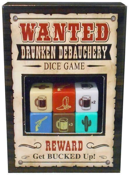 Get “bucked upâ with Drunken Debauchery, the newest edition to our line of drinking games. It’s a fast-paced game that keeps the party going. Each player takes a die while removing extra dice from the game. Players then roll the dice simultaneously and do the action they land on. The cactus means players get to make up a ridiculous gesture like “hop up and down on one leg while clappingâ€. The beer mug means drink, the boot reverses the order and the gun means you’re out of the game until the next round. The winner is the last man standing, AKA, the player who did not roll the gun. It’s the perfect game for gatherings as it doesn’t take any set up, the rules are simple, and it keeps the entertainment coming.