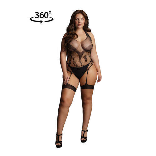 Unlock next level allure in this audaciously erotic, lace pattern, halterneck Crotchless teddy. The deep-V, fishnet neckline is adorned with beautiful rhinestones. The attached opaque leg garters mean one thing's for sure: all eyes are on you. The soft, stretchy, fabric makes it a comfortable, and easy fit. Thong not included.
