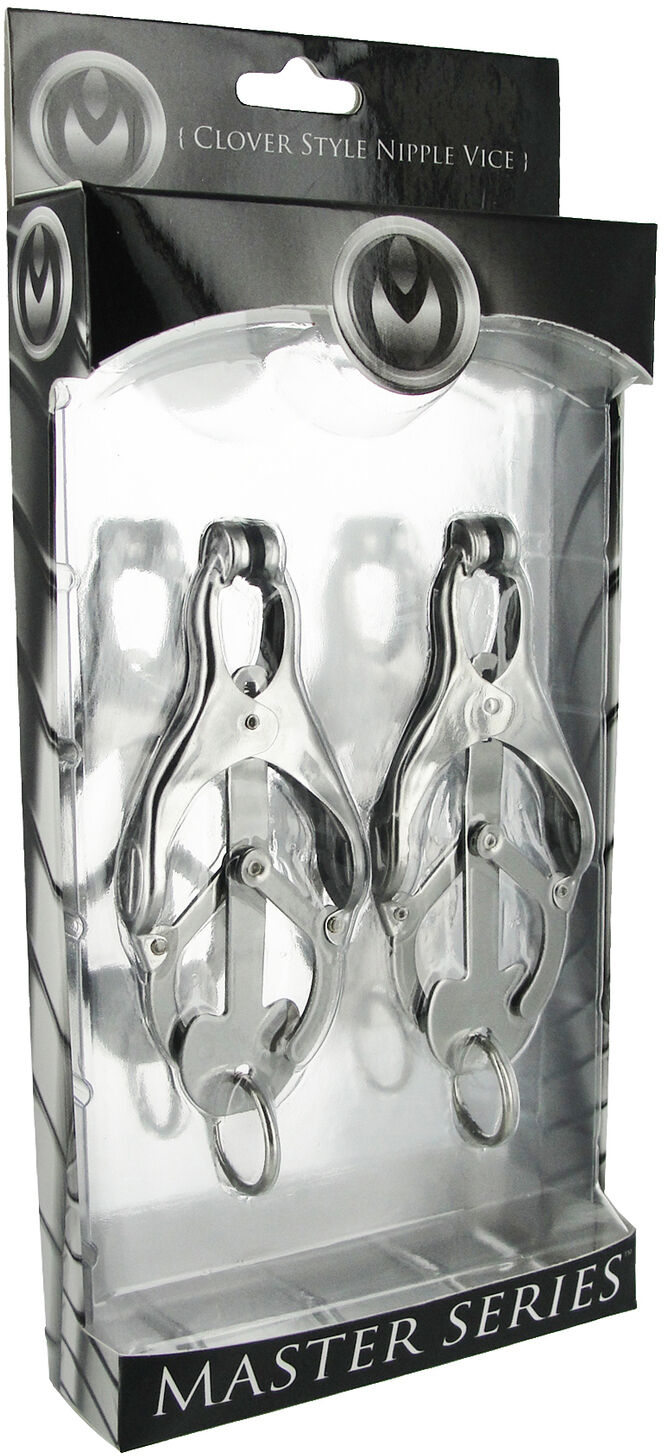 A comely device of restriction and paradise. The Ringed Monarch is an effective training tool in the art of endurance and sensation play. These devious chrome clover-style clamps are ideal for solo play or with the one you want to dominate. When the O-ring is pulled, the clamps pressure becomes more intense. Use your imagination, this devious set includes a convenient O-ring that can be weighted, laced, and more. In your domain: you decide.