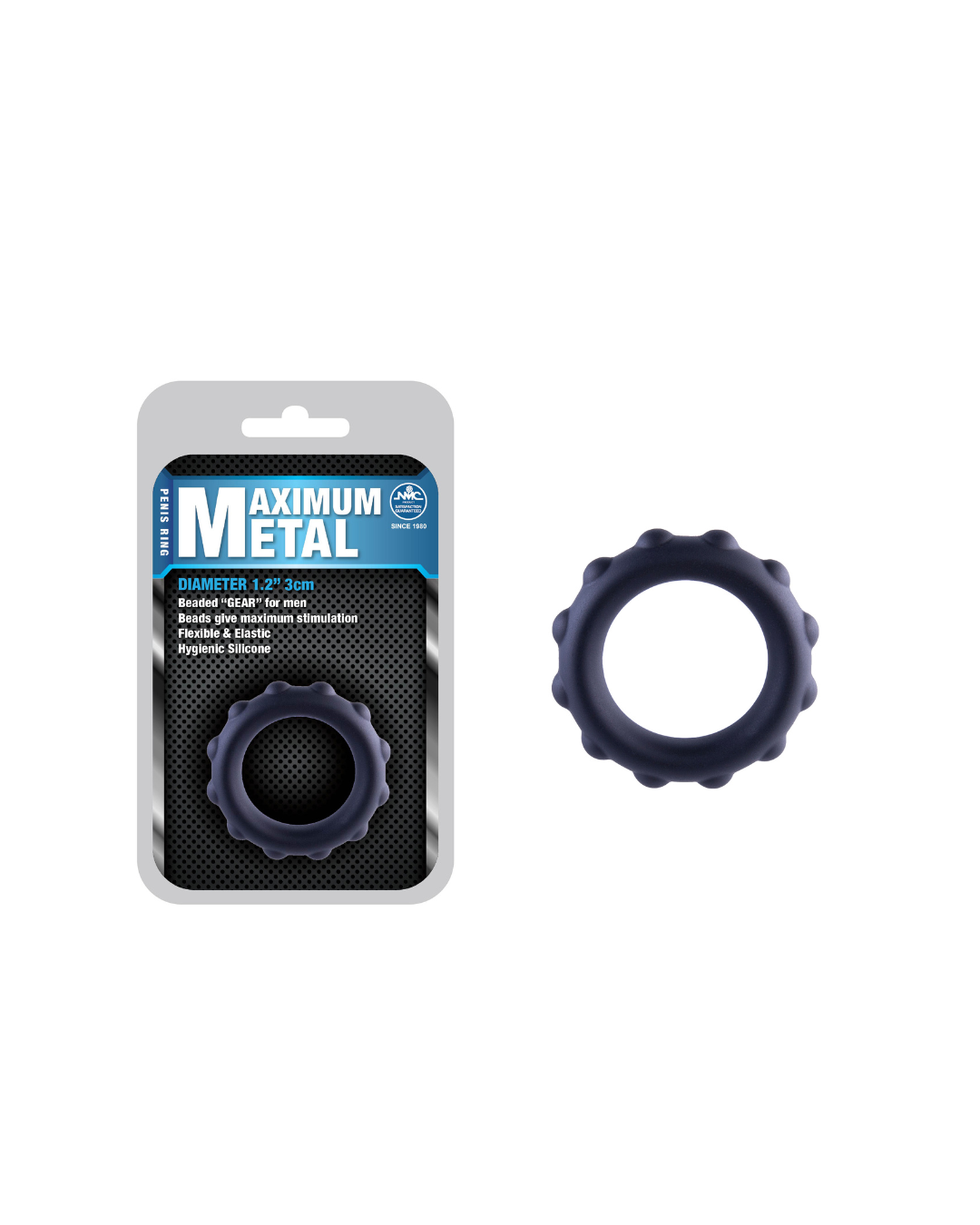 Looking to intensify your pleasure with unwavering style? Meet the MAXIMUM METAL SILICONE ORNAMENT WITH METAL BALL — where sleek design meets peak performance. This beaded ring isn't just a looker; it's your trusty sidekick for unforgettable moments. With a bold textured surface that teases and pleases with every movement, it's crafted to keep you going longer, harder, and stronger.