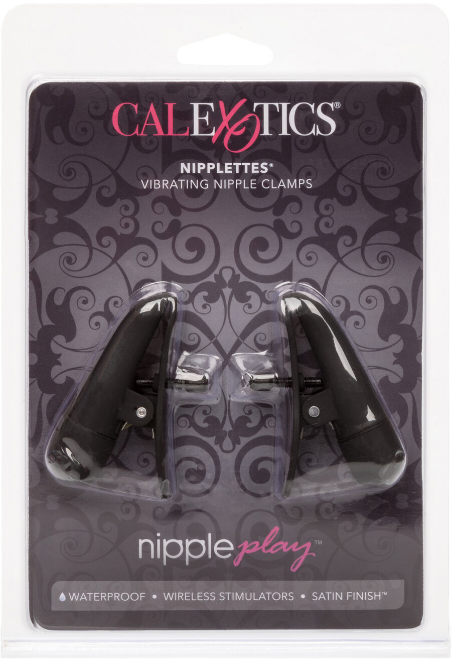 Engage in erotic nipple fun with the designer Nipple Play Nipplettes. The fully adjustable multi-use clamps are designed for intimate satisfaction and increased orgasmic ecstasy. The easy to use clamps are suitable for him and her, and ideal for first time and experienced pleasure/pain seekers. The nipple clampsare made from ultra silky smooth ABS with PU Cote and have a sleek design. The vibrating clamps measure 2.75”/7 cm and have a high-intensity wireless motor with easy push button control, for instant arousing fun. Nylon screws allow you to adjust the clamp fit for perfect satisfaction. To power up the sensitive pleasure, push the button located at the end of each clamp and experience tantalizing tingles and mind-blowing sensations. To maximize the unforgettable experience, apply a small amount of quality lube or arousal gel to the nipple, before securing the clamps. The nipple clampsare waterproof and great for intimate stimulation during hot tub, bath or shower play. The multi-use clamps can also be used to arouse other sensitive areas of the body. Before and after every use, remember to clean the clamps with a toy cleaner spray. The clamps can also be washed in warm, soapy water.
