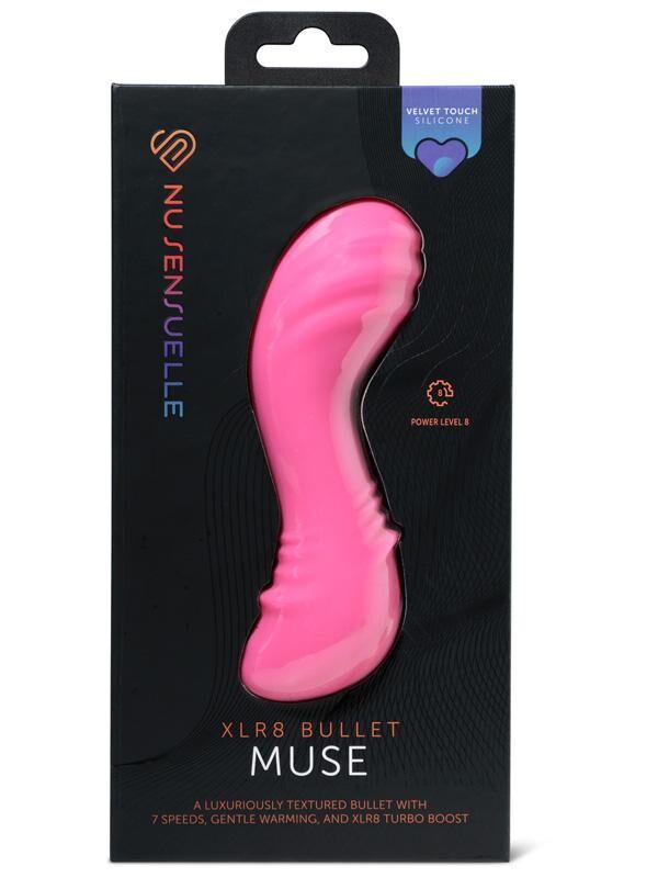 Welcome to a world where sleek design meets powerful pleasure with the Nu Sensuelle Muse XLR8 Bullet Pink. Cloaked in that irresistible Velvet Touch™ liquid silicone, it’s not just a buzz — it’s an all-out velvet revolution in your hand. From the first caress, this little weapon seduces with luxurious sensations, inviting you into a realm of indulgence and delight. Whether for a solo escapade or to fire things up with a mate, it’s set to deliver an evening of uninterrupted ecstasy.