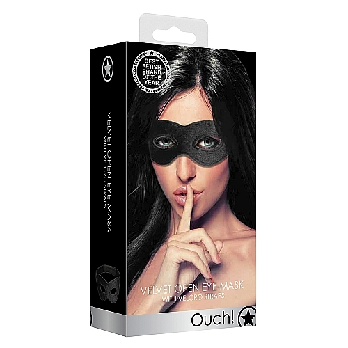Add an air of mystery to your bedroom or BDSM play by slipping into this seductive Ouch! Open Eye Mask. Suitable for wear by men, women and Doms and Subs, the elasticated strap simply slips over the head to fix in place. Keep an eye on all the action, without giving away your identity. Ideal for accessorising your role play or fancy dress, they\'re erotic, stylish and enhance your imagination's wild side.