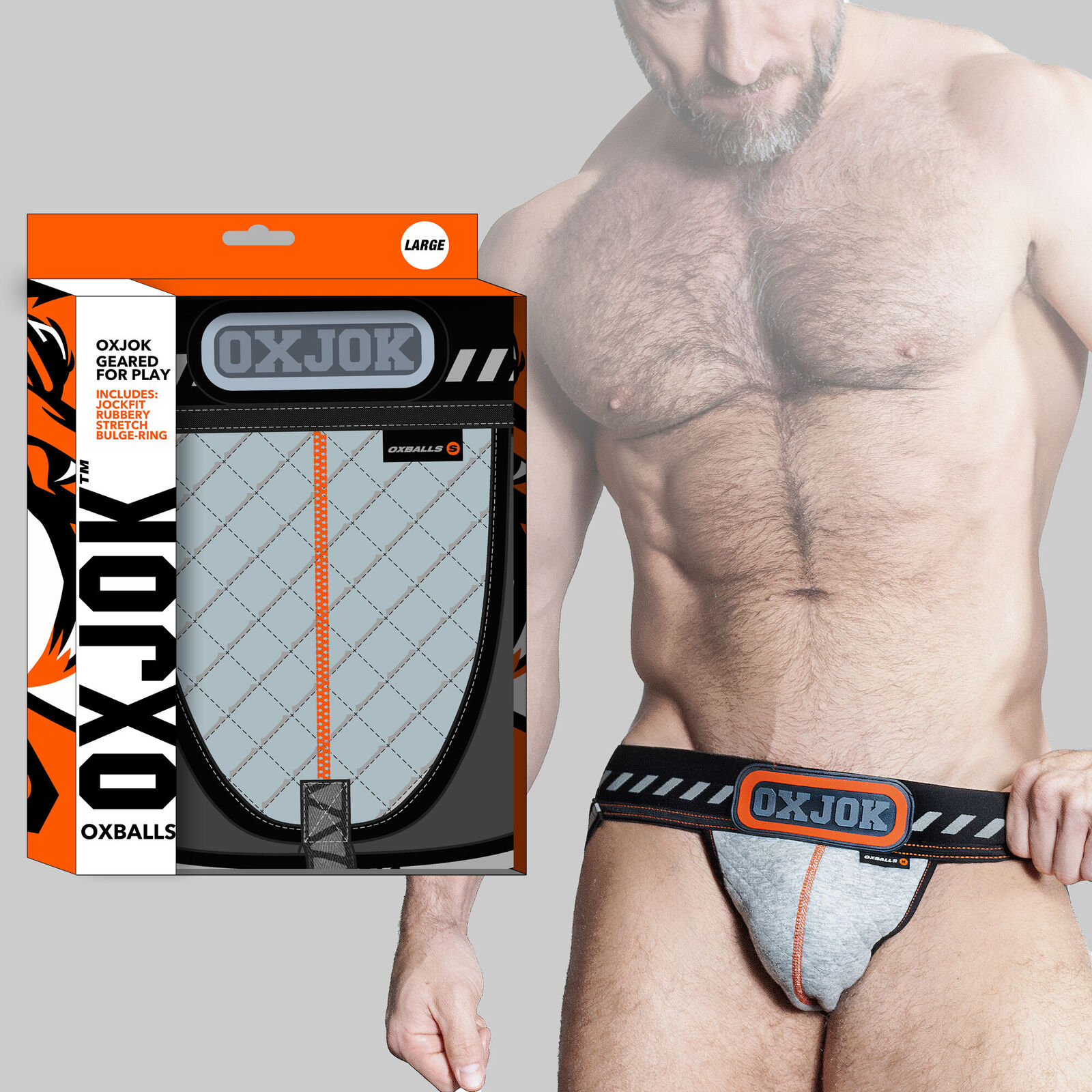 HAZZARD stripe waistband with the 3-D rubber OXJOK label up front and centre, 3-fold pouch edging for comfort and we embroidered “PACKER” on directly over your buttcrack on the waistband back for rear-view cockiness.
