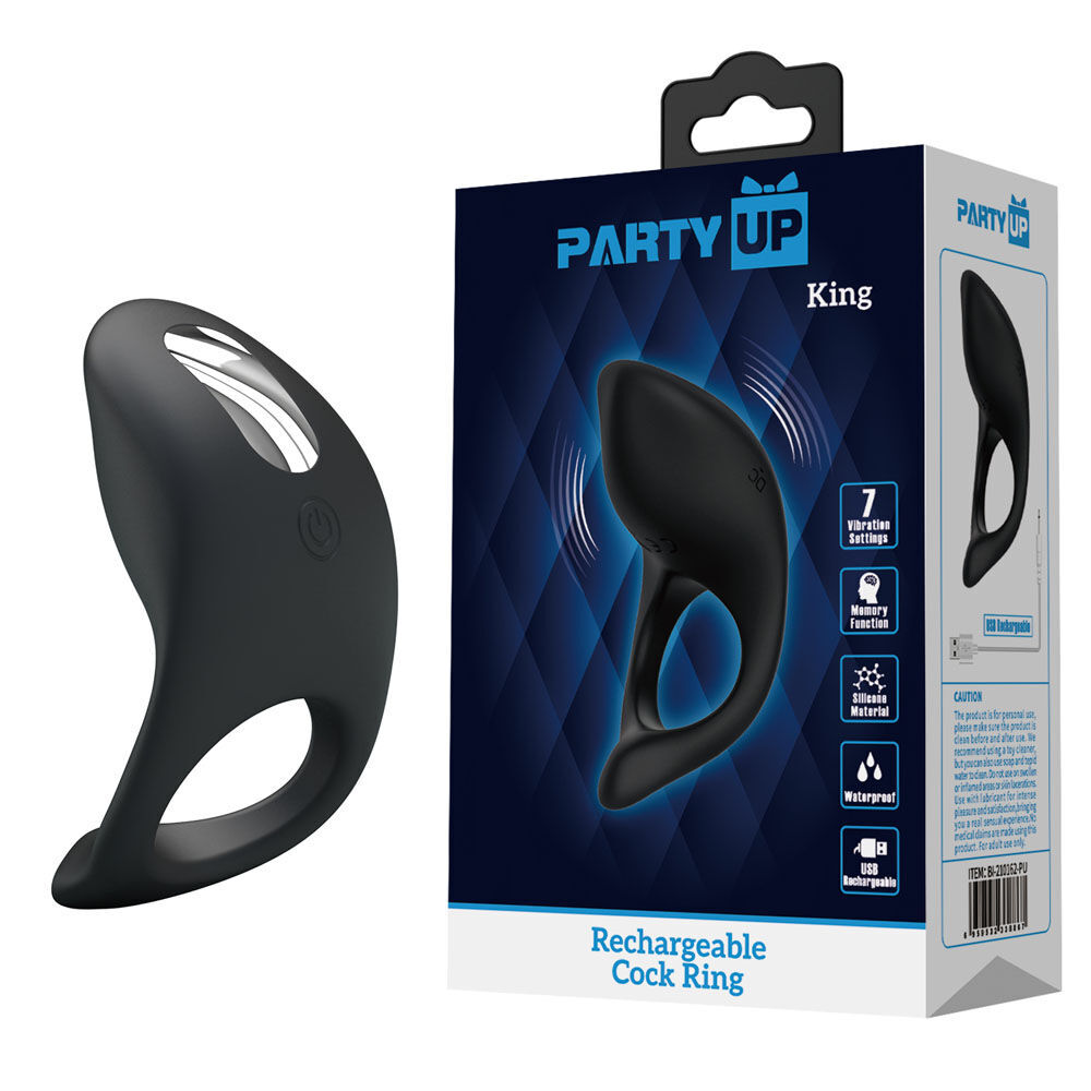 Party Up KING Rechargeable Cock Ring Black USB Rechargeable Cock Ring