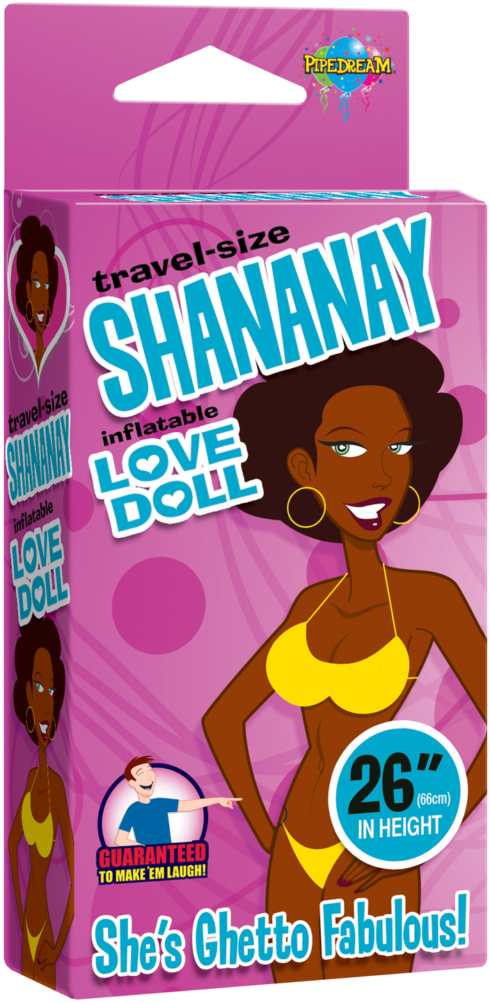She put the H in Hoochie-Mama and went from ashy to classy! Meet Shananay, the ghetto fabulous blow-up babe with mocha chocolate skin and a bootylicious backside. She's got junk in the trunk and lips that could suck the chrome off some 22s, but that never stopped her from having a good time! This loud and proud piece of ass never says no...Just add air and she's ready to blow!