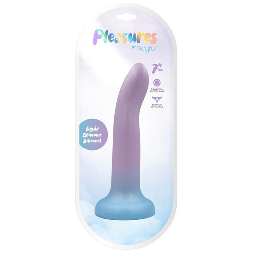 Step up your playtime with a touch of shimmer and a dash of daring. The 7" Pleasures Premium Dildo is here to make your solo adventures or couple's sessions a whole lot more exciting. Crafted from ultra-smooth liquid silicone, this beauty doesn’t just catch the eye—it’s built to satisfy. With its strong suction cup, you can take the fun hands-free, whether you’re in the shower or sticking it to any flat surface. Its flexible shaft and smooth, tapered tip are designed for comfort and precision, hitting your sweet spots whether it’s the G-Spot or the P-Spot you’re after. Go ahead, add a bit of shimmer to your pleasure arsenal.