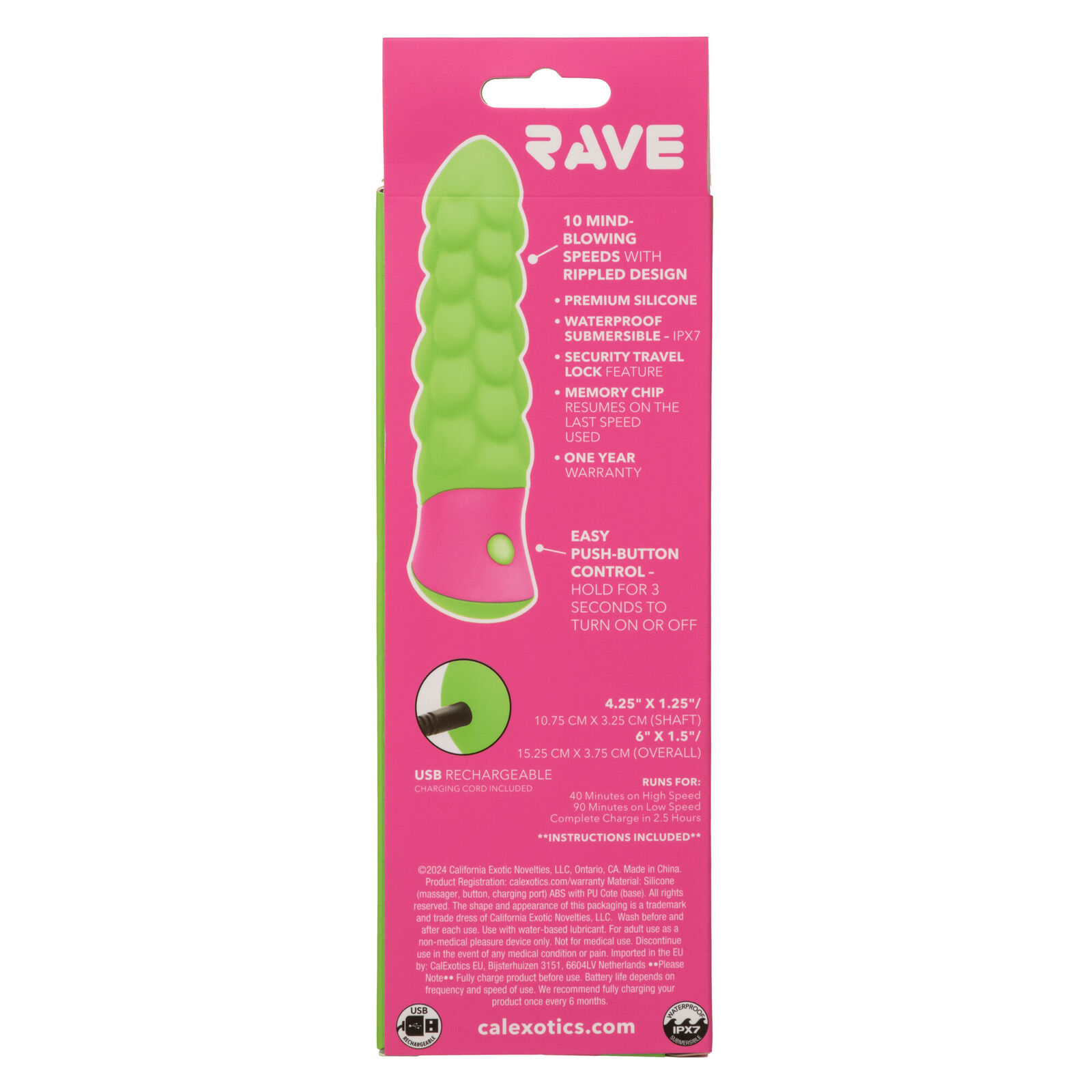 Unleash a sea of sensations with the uniquely crafted RAVE RIPPLE by Calexotics. Designed to bring the power of the ocean right to your hands, this distinctive massager will send ripples of pleasure through every curve and contour. Forget the ordinary—this masterpiece is your ticket to waves of ecstasy. Its bold, rippled form isn't just eye candy; it’s a promise of intense sensation just where you want it.