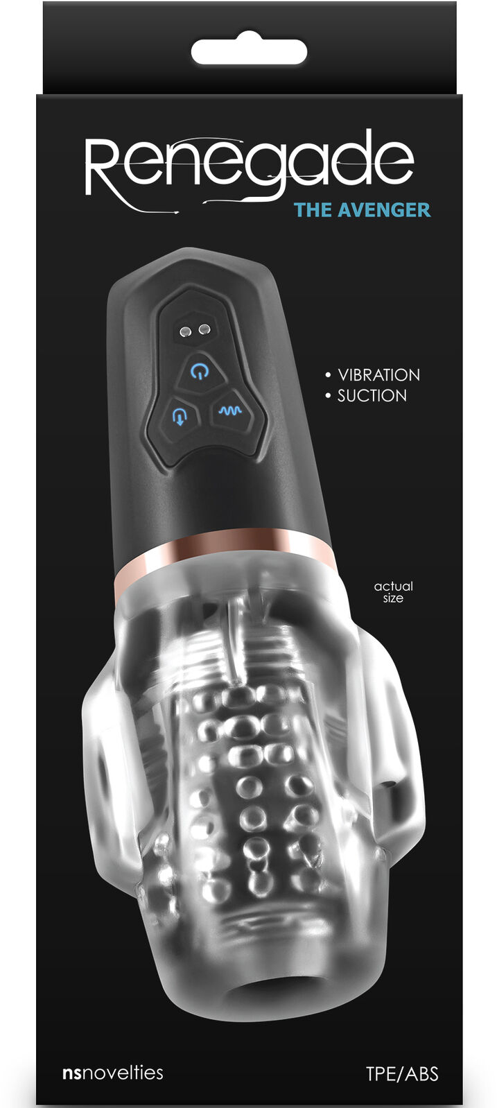 Time to elevate your solo sessions to legendary status with the Avenger Spinning Stroker from Renegade. This isn't your run-of-the-mill stroker; it's an electrifying ticket to simulated oral pleasure that'll leave you wondering how you ever managed without it. With six suction modes and seven vibration settings, you're in the driver's seat of your own pleasure palace. Whether you're a first-time explorer or a seasoned pleasure pro, the Avenger is the ultimate addition to your solo arsenal.