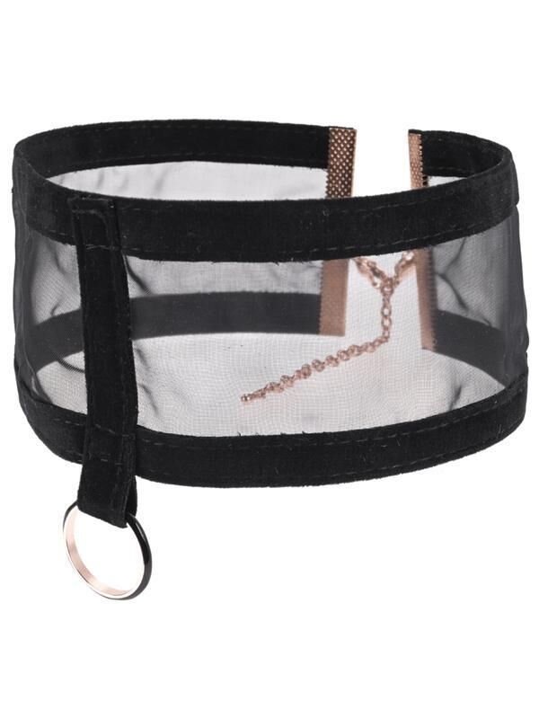 Step into the world of subtle dominance and undeniable style with the Sex And Mischief Sheer Day Collar. This isn't just a collar; it's your secret weapon for adding a tantalising touch of allure to any outfit. Whether you're strutting through the day or gearing up for a night of intrigue, this collar sets the scene for a blend of fashion and fantasy. Crafted with a black and gold collar ring and finished with a luxurious velvet ribbon, it's the perfect piece to elevate your game both in and out of the bedroom.