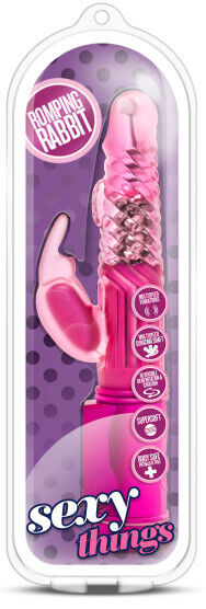 Have a little romp with The Romping Rabbit. This is our favorite beginner's rabbit. Petite in size with a little over 4 inches of soft gyrating shaft you will thrill at the pleasure the rabbit shaped clit stimulating vibrator. The rotating pleasure beads rotates and reverses its rotation. It's many patterns of rotating and vibratng will always keep The Romping Rabbit new and refreshing. It's like having a new lover each time! Clean shaft with soap and water taking care not to drench the controller as this product is only splashproof. Dry with clean cloth. Requires 4 AAA batteries. Not included. We recommend storing your toy in our Safe Sex Antibacterial Toy Bags