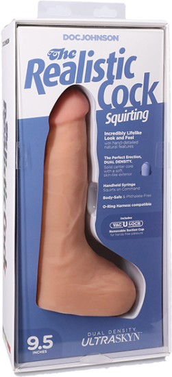 The Realistic Cock - Squirting Cock - With Removable Vac-U-Lock Suction Cup - ULTRASKYN - 9.5 Inch (with balls) Vanilla