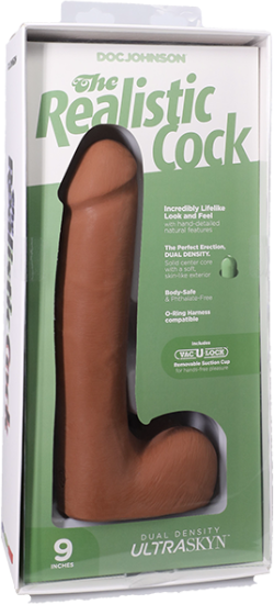 The Realistic Cock - With Removable Vac-U-Lock Suction Cup - ULTRASKYN - 9 Inch (with balls) Caramel